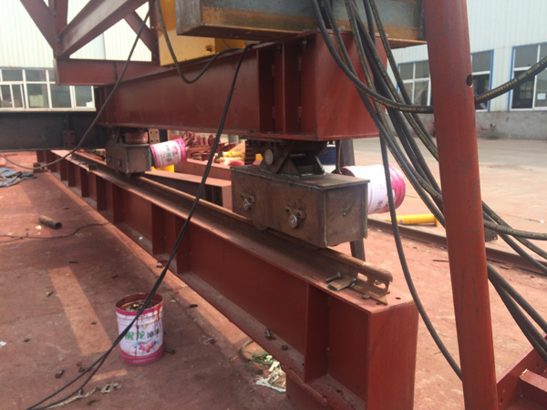 結(jié)構(gòu)∶液壓驅(qū)動自行式移動棧橋,主要由前橋、主橋、后橋、前段支架、后段支架、行走驅(qū)動裝置、行走支架七個部分組成。