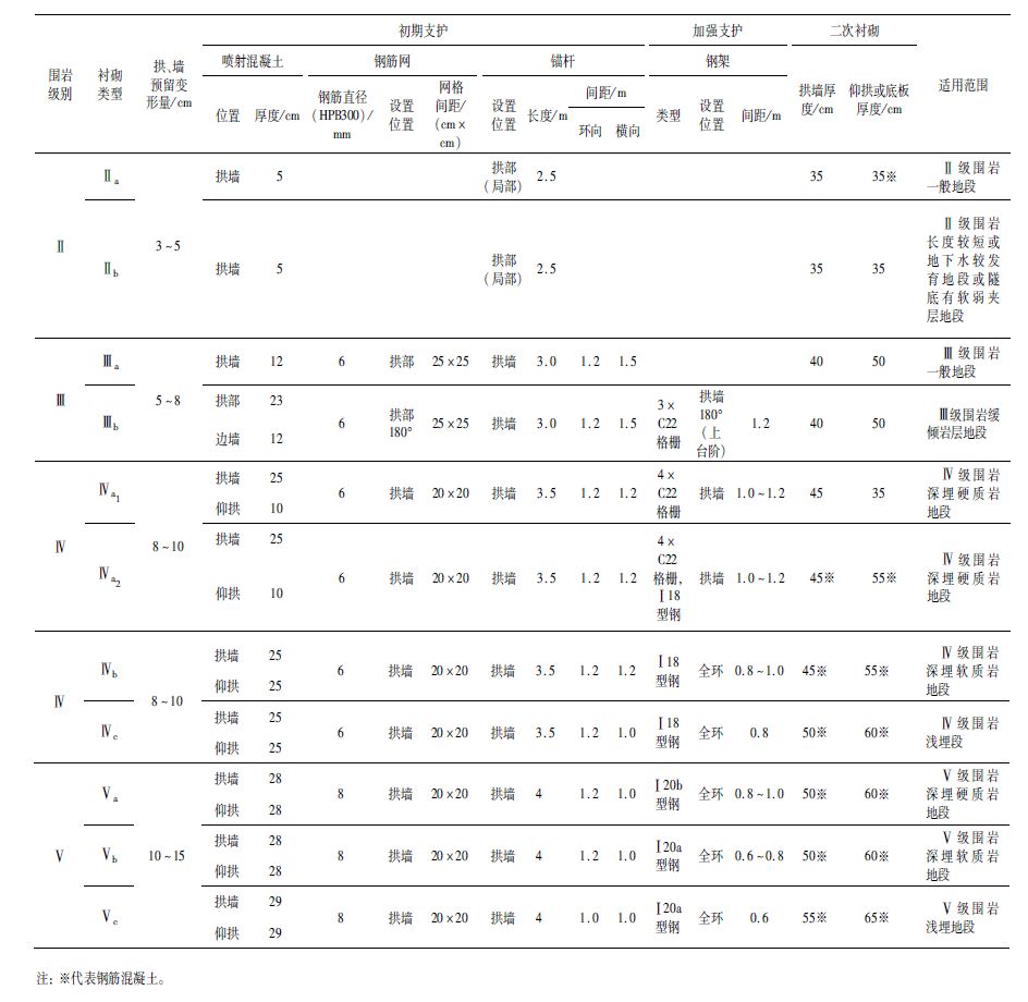 基于新奧法理念,隧道支護結構設計中將圍巖和初期支護作為承載主體,承擔部圍巖荷載,二次襯砌作為安儲備。