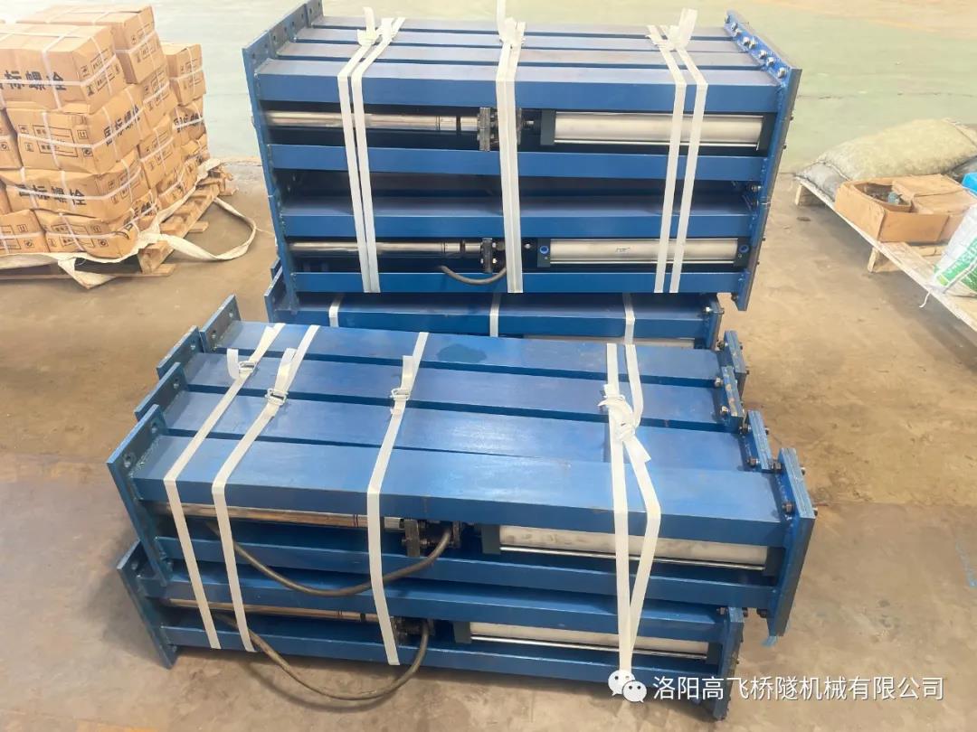 臺(tái)車(chē)配置一套混凝土分層澆筑布料系統(tǒng),實(shí)現(xiàn)了混凝土逐窗分層澆筑,設(shè)備可實(shí)現(xiàn)兩側(cè)和拱頂布料,每層四個(gè)入料點(diǎn),進(jìn)一步提高襯砌施工效率和質(zhì)量。臺(tái)車(chē)布料系統(tǒng)不需要人工拆管、接管、換管和清洗,僅需一名操作人員輕松操作遙控器,即可實(shí)現(xiàn)分層逐窗澆筑。