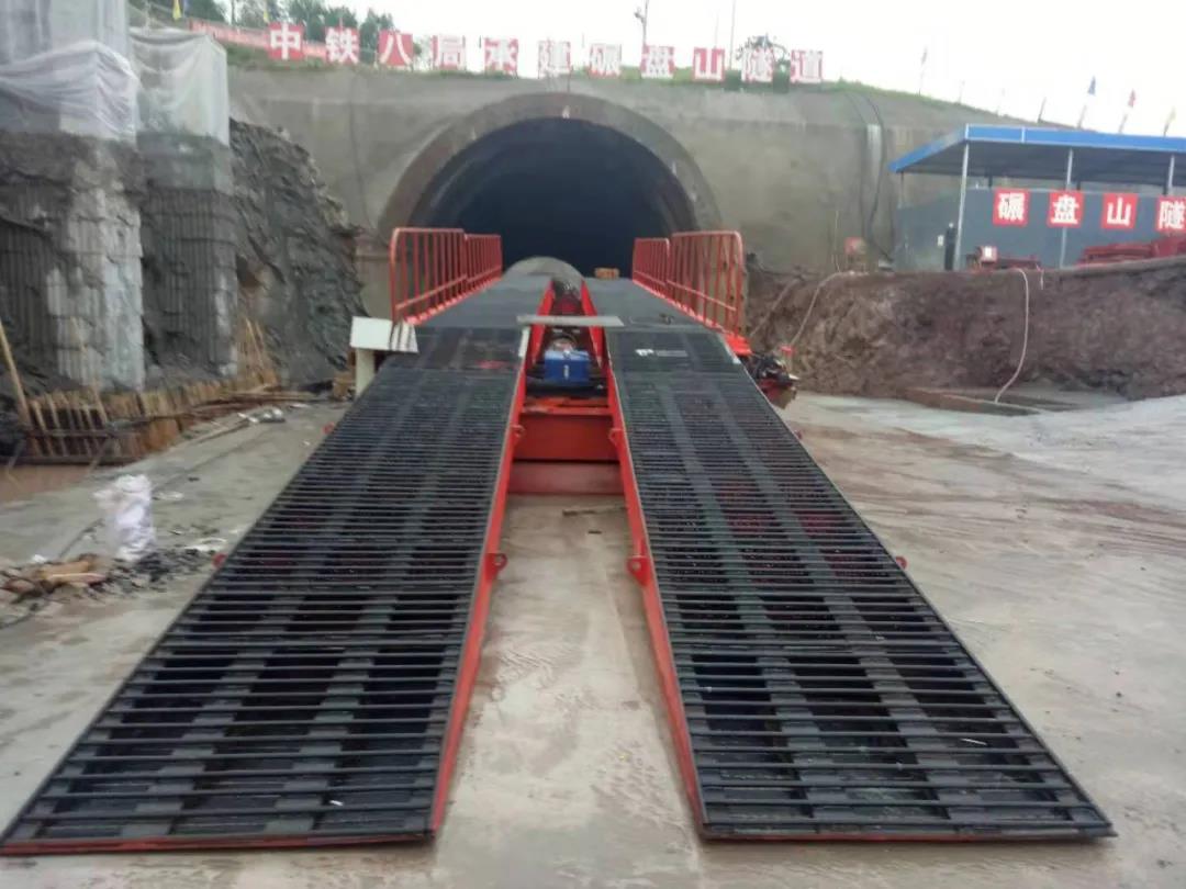一般為12米凈跨規(guī)格,其特點(diǎn)是前置前驅(qū),具有操控簡便、皮實(shí)耐用等特點(diǎn),由前置履帶系統(tǒng)、主橋系統(tǒng)、引橋、行走拖輪組成,行走時(shí)通過遙控操縱履帶前進(jìn)后退,完成行走,可以配置一體化仰拱模板。