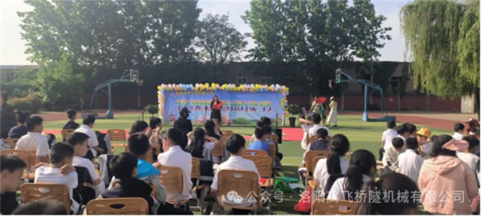 四月,春暖花開,萬物復(fù)蘇, 西工區(qū)張嶺小學(xué)的大馬士革玫瑰花香飄滿了整個(gè)校園,在這樣一個(gè)生機(jī)勃勃的季節(jié)里,張嶺小學(xué)舉辦了玫瑰飄香閱讀節(jié)活動(dòng),洛陽(yáng)高飛橋隧機(jī)械股份有限公司也有幸參加了本次活動(dòng)。經(jīng)史子集,傳承中華文脈;詩(shī)詞曲賦,浸染沁人書香。張嶺社區(qū)副書記和張嶺小學(xué)的校長(zhǎng)在大會(huì)上做了精彩致辭并宣布閱讀節(jié)活動(dòng)開始。